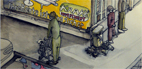 Zu dieser Ausstellung mit 16 Künstlerkollegen aus allen Kunstsparten ist eine Serie von kleinen, farbigen Zeichnungen entstanden.